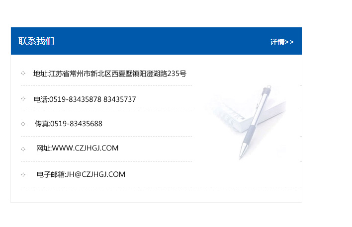地址:常州市新北區友邦商務大廈1幢16、17層  電話:0519-85101652  傳真:0519-85112595  郵編:213022  網址:www.cz-jiayue_cn.cskanglebaozhuang.com  郵箱:xiajifengaa@163.com